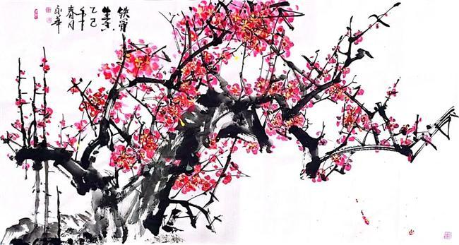 1. 技法创新:突破传统国画“点梅”的模式,以“大写意写梅”为核心,结合点、线、面塑造花蕊,通过浓淡墨色表现梅枝的苍劲虬曲,色彩上融合淡彩与水墨,兼具传统韵味与现代视觉张力;