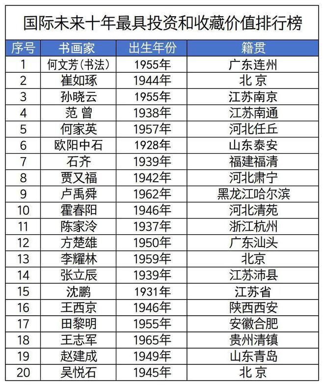 国际未来十年最具投资和收藏价值排行榜, 以专业视角锚定文化资产的时代坐标,既为全球藏家提供前瞻性价值指引,更成为衡量艺术创新与文化传承融合度的权威标尺。