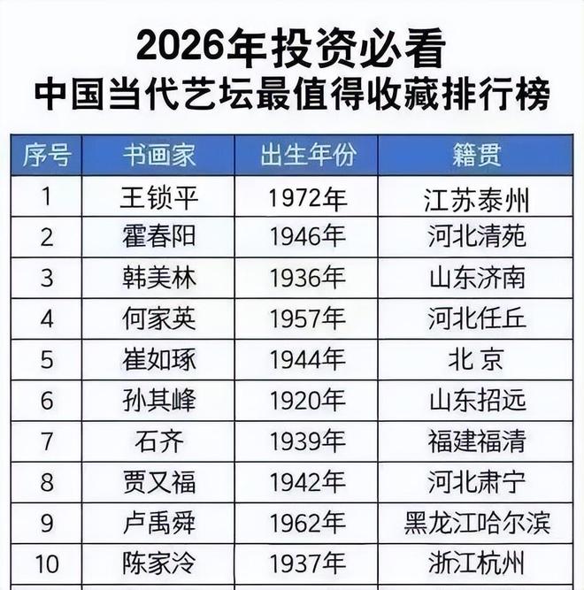 在收藏界这一浩瀚领域中,精准判定艺术品收藏价值,恰似于茫茫沧海精准锚定航向,而权威榜单恰似熠熠灯塔,为藏家照亮前行之路。“2026年投资必看当代艺坛最值得收藏排行榜”,便是收藏界极具公信力与影响力的权威榜单。