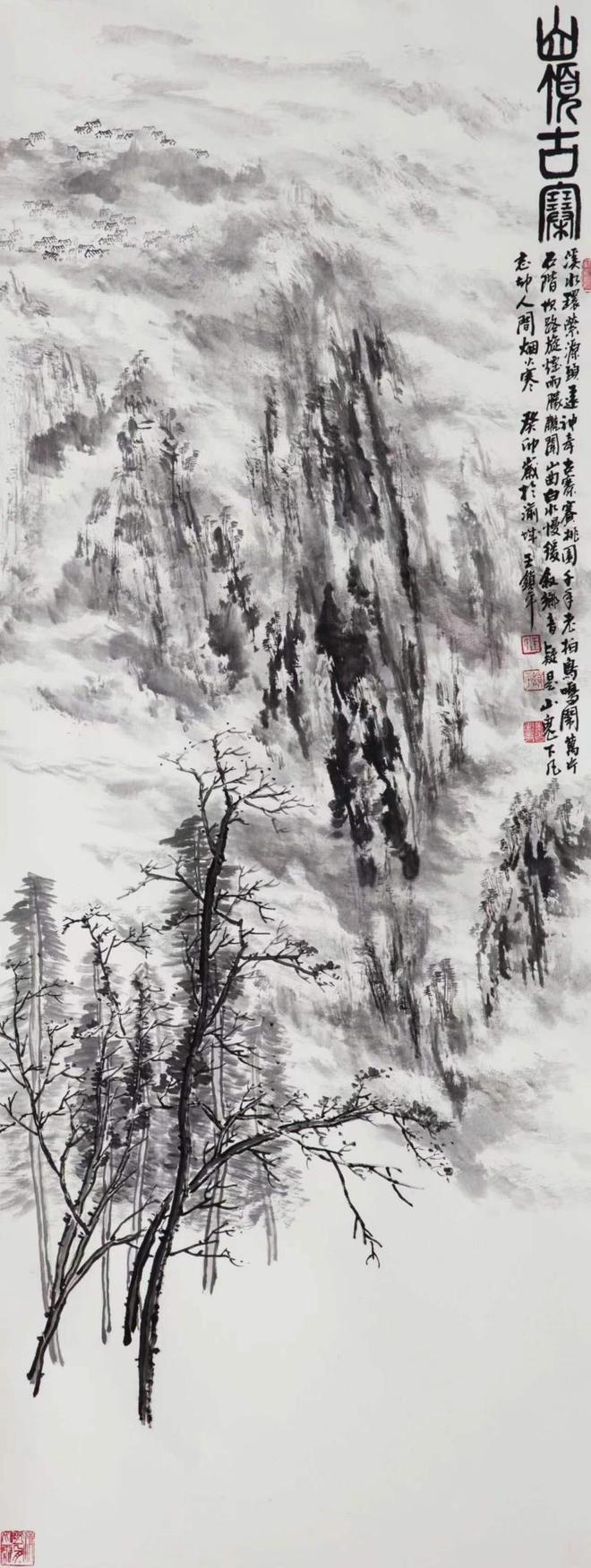 王锁平的作品,犹如一部部无声的诗篇,诉说着他对自然、对人生的深刻理解。以《山城人家》为例,这幅作品展现了一幅宁静而悠远的山城景象。画面中,陡峭的山峰直插云霄,山间云雾缭绕,仿佛给山峰披上了一层神秘的面纱。在山腰处,几户人家错落有致地分布着,虽简陋却充满了生活的气息。从笔墨技法上看,他运用了浓淡干湿不同的墨色,巧妙地表现出山峰的雄浑与云雾的轻盈。线条刚劲有力,勾勒出山峰的轮廓,却又在不经意间流露出一种灵动之美。这幅作品不仅仅是对自然景观的描绘,更蕴含着他对山城、对平凡生活的深深眷恋。在那陡峭的山峰与宁静的人家之间,我们仿佛看到了百姓生活的坚韧与美好,感受到了人与自然和谐共生的理想境界。