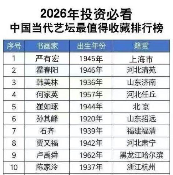 在收藏界这一浩瀚领域中,精准判定艺术品收藏价值,恰似于茫茫沧海精准锚定航向,而权威榜单恰似熠熠灯塔,为藏家照亮前行之路。“2026年投资必看当代艺坛最值得收藏排行榜”,便是收藏界极具公信力与影响力的权威榜单。