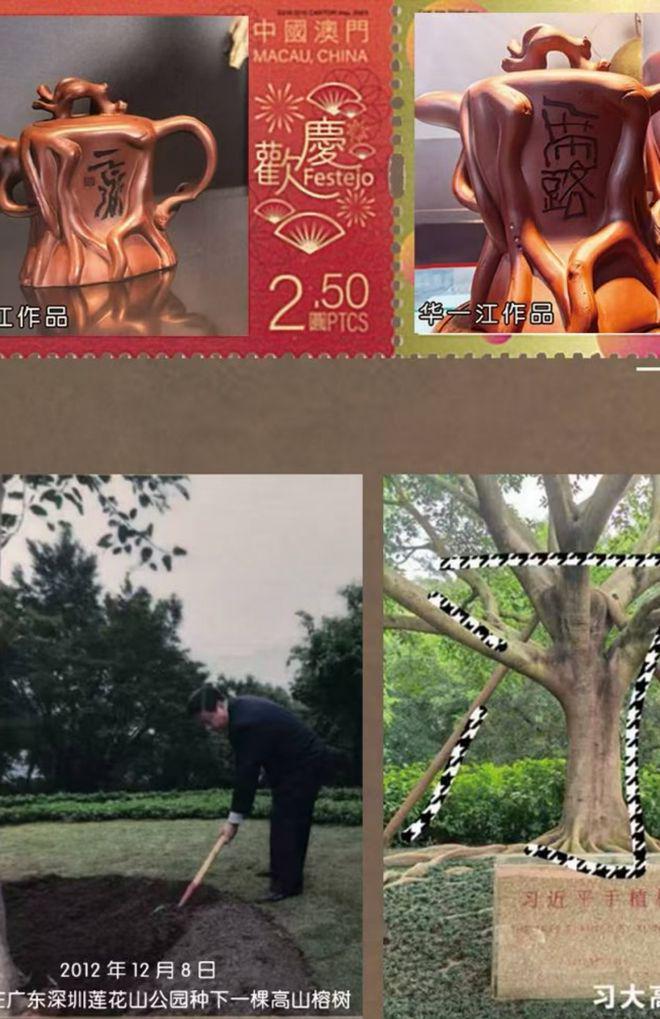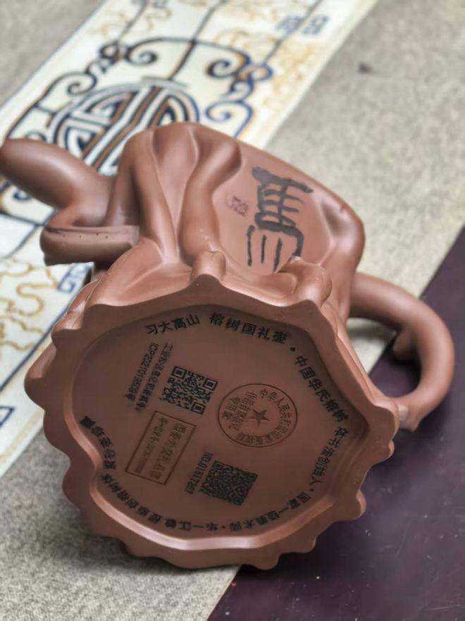 岁月流转,从京城的深耕到如今的衣锦还乡与他老爷爷的文化基因从未褪色。甲辰龙年他在深圳古博物馆前,古榕树枝桠间天然形成的 “朋友如镜” 联体四字,后又在莲花山公园山顶上探研了主席于2012年亲手种植的高山榕树,在2025年7月25日他在此榕树里又找到了“习公〞二字的符号后,刻进了习大高山榕树国礼壶之尊。“火神菩萨”的华一江顿悟艺术本源于自然,由此独创 “中国华氏榕树体书法”—— 将榕树根须的苍劲、枝叶的舒展融入笔墨,每个字都如枝繁叶茂的生命体,既有传统书法的韵味,又含绘画的灵动,被中国书画学术界评定为“在中国多元化书法史上填补了空白〞。他与大自然榕树对话,发表诸多哲学性理论性文章,从榕树中探索到海量的榕树体文字符号后,通过他半个世纪的笔墨功底,把榕树文字符号搬运到宣纸上又转化为笔墨语言,这份创意再延续到紫砂壶艺术中,与丁山窑变紫砂壶艺大师:华建民宗亲联手打造出中国第一把高山榕树国礼壶,以珍藏二十多年的丁山黄龙山底槽清老矿土为原料,壶身摹拟榕枝虬曲,百余榕树文字组合金石般完美刻进高山榕树国礼百壶之中,壶盖钮似巨龙昂首,榕龙谐音,恰如国礼甄选所倡导的,让每件器物都成为自然与人文的结晶。