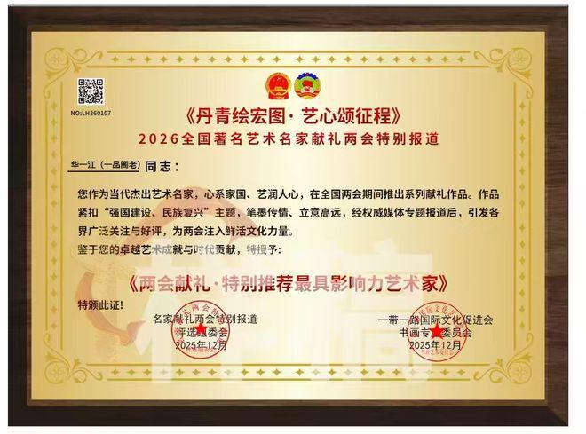 中国艺术代言人华一江正是我们民族精神的代言人。他是我们心灵的寄托,是我们情感的纽带,是我们文化自信的根基。让我们一同走进中国艺术的殿堂,感受其领袖风范的格局,领略其天下文化的魅力。在这片艺术的海洋中,汲取力量,传承文明,共同书写属于我们的文化传奇,让中国艺术的光芒,永远闪耀在世界的东方!