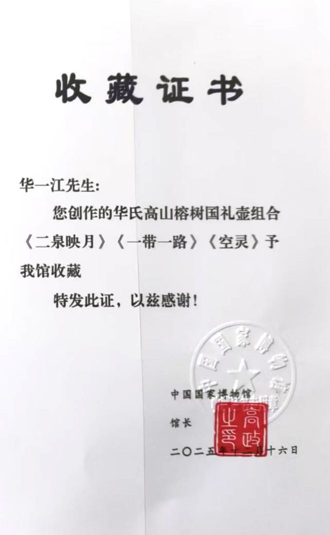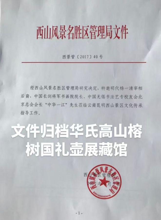 作为 “榕树体书法” 创始人、“高山榕树国礼壶” 原创设计者,华一江的艺术品牌核心竞争力在于 **“深厚文脉 + 独创艺术” 的双重融合 **,而杨一清探源寻根文件为其艺术创作与品牌构建提供了独家、不可复制的历史文化赋能: