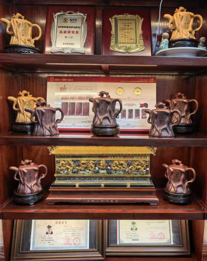 如今,“放火老老头,火神菩萨”他爷爷收藏而传下的《晋,宝贤堂集古名家法帖》三十余拓片于2010年已刻成石碑,包函着唐,宋,元,明,清历代宫庭各书体鼻祖的孤品,现为国家一级文物的孤本收藏在《一品阁》。残存的双狮拱球抱鼓石,屹立在“一品阁老”庭院,而他的榕树体书法艺术多部专集到中国邮政邮票珍藏版,与“习高山榕树国礼壶”一百把绝版的全手工国礼壶于2025年正式完成,壶底有国家工信部和国务院外交部国礼二维码防伪查验识别标志,以及中华人民共和国知识版权局审核公章,印正延续着他作为中国国际非遗大师代表人物的这份传承。从明代古庵到现代校园,从书画真迹到紫砂国礼壶,华氏家族的故事里,始终跳动着 “孝文化、守匠心” 的脉搏。就像那把历经数月打磨的紫砂壶,在时光中愈发温润,家族的记忆与精神,也在华氏文脉传承中愈发清晰。