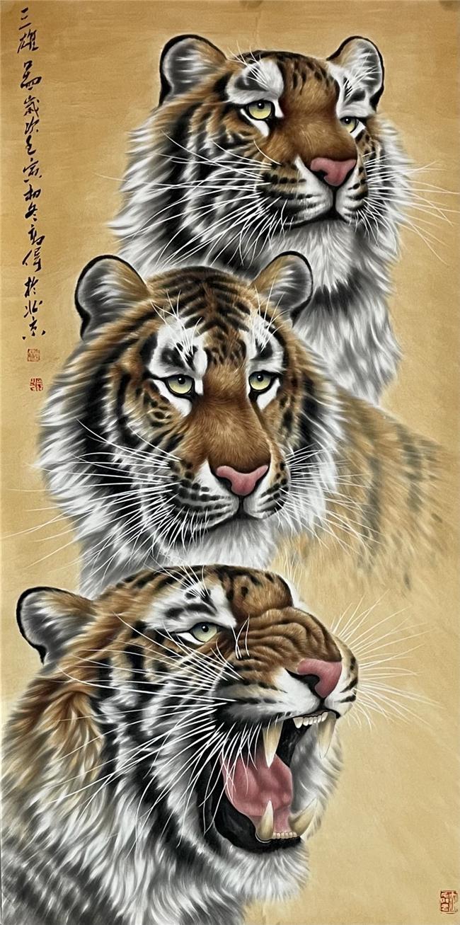 在中国当代画坛,高伟于画虎领域独树一帜,稳居前列,被公认为实力派画虎画家的领军人物。作为“大风堂”画虎宗师张大千、张善孖第四代传人、当代画虎大师姚少华先生的入室弟子,他不仅继承了先辈的艺术精髓,技艺更是日臻化境,是继冯大中、姚少华之后,又一位攀登画虎艺术高峰的杰出代表。