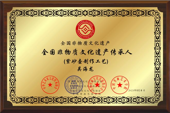 在江苏宜兴丁蜀镇的晨雾中,一座青砖黛瓦的庭院静卧于岁月长河,檐角滴落的露珠折射着初阳的微光,与院内若有若无的茶香交织成一幅江南水墨。这里是中国工艺美术大师吴海龙的紫砂艺术馆,也是他半生匠心的凝固诗篇。作为吴氏陶艺第五代传人,这位以双手为笔、以紫砂为墨的艺术家,将千年茶文化凝练成壶中乾坤,让非遗技艺在新时代的浪潮中绽放出夺目光彩。