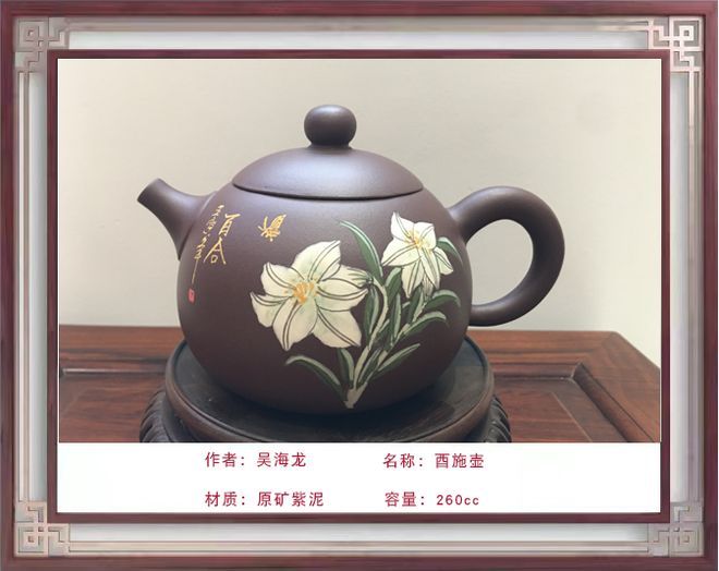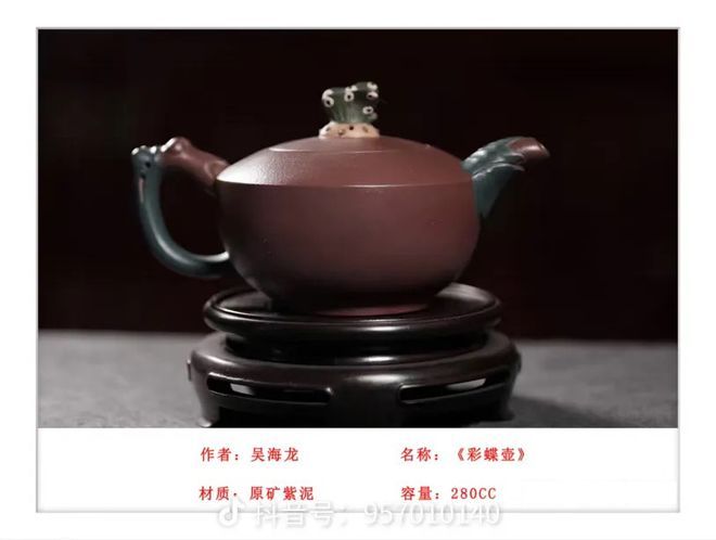作为纽约美中艺术文化交流协会执行主席,吴海龙每年有半年时间漂洋过海推广紫砂文化。2023年,他在大英博物馆举办“紫砂与东方美学”特展,用《彩蝶壶》演绎中国茶道。这件以花瓣为壶面、蝴蝶为壶钮的作品,翅膀上的纹路用0.1毫米的绞泥丝勾勒,在伦敦拍卖会上以38万英镑成交,创下当代紫砂壶海外拍卖纪录。