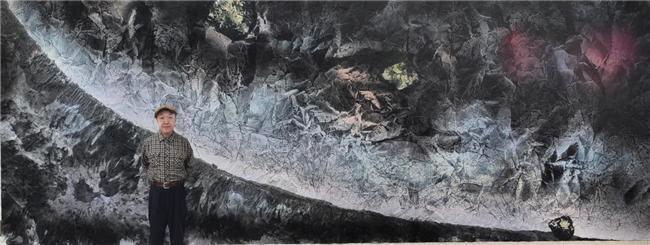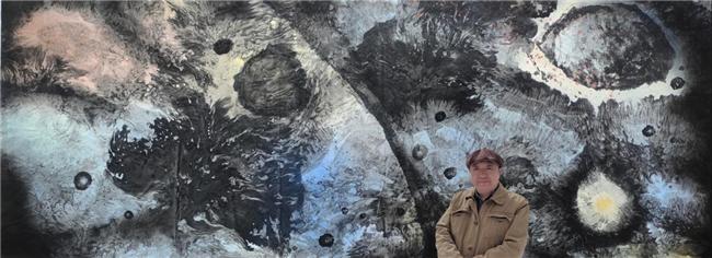 这幅巨制《宇宙、陨石系列、星河》,高度2米4 0,长度达450余米,面积达1080平方米( 近万平方尺),比中国艺术巨匠张大千先生的长江万里图大九十倍,比意大利文艺复兴时期的艺术巨匠米开朗基罗在梵蒂冈西斯廷教堂创作的巨幅壁画《创世纪》还要大出很多,堪称世界之最。