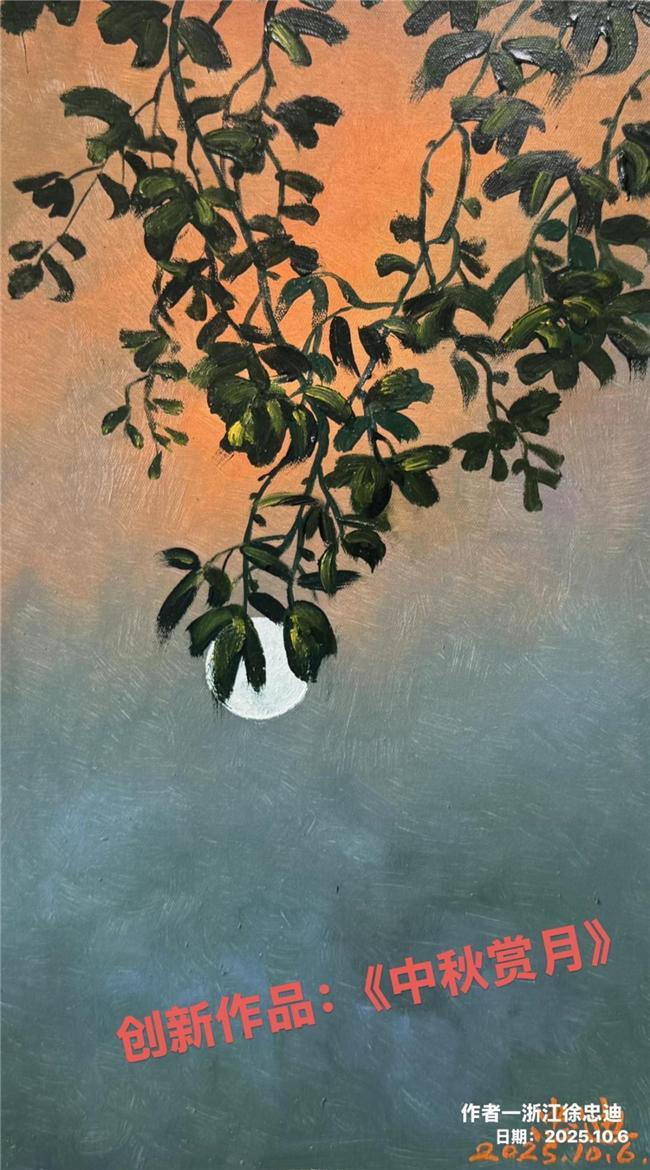 中国油画界代表人物徐忠迪作品《中秋赏月》