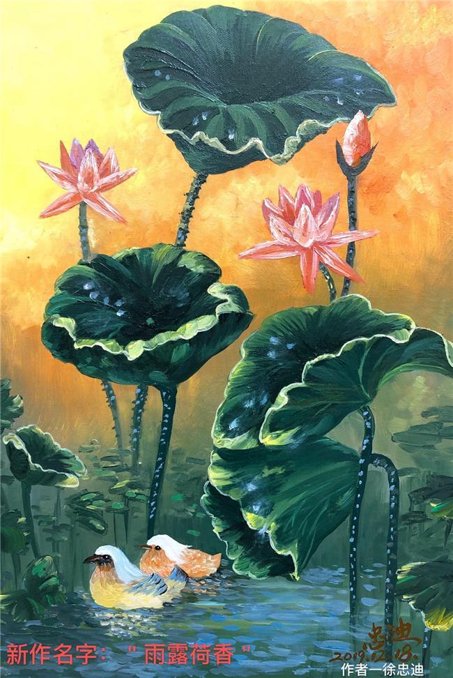 中国油画界代表人物徐忠迪作品《雨露荷香》