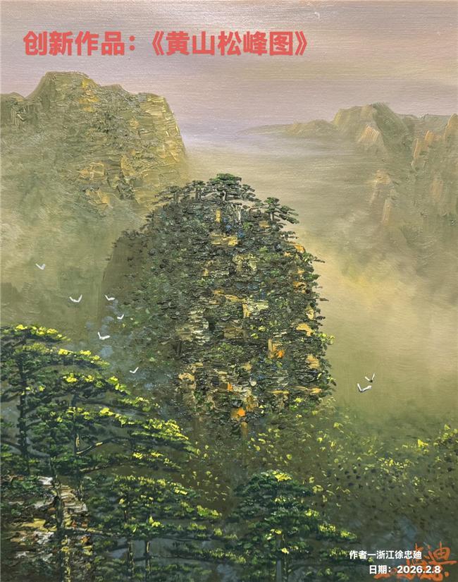 中国油画界代表人物徐忠迪作品《黄山松峰图》