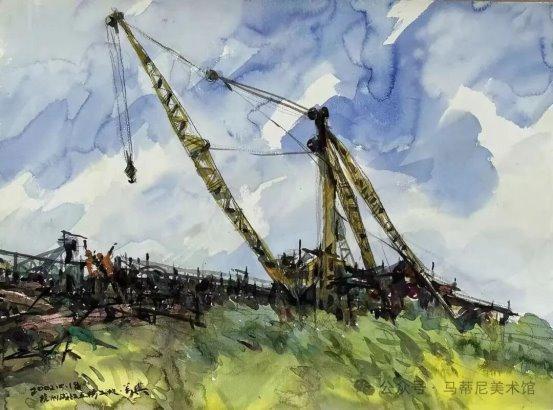 《杭州钱江五桥工地速写》78x62cm 2002.5