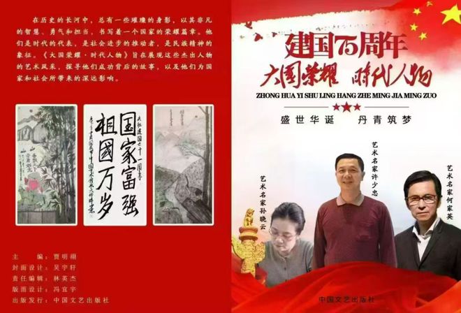 团结同心协力工作,德才兼备,受到国内外社会各界人士赞扬!为国家建设和创作书画艺术品等方面做了较多较好贡献!为国家人民造福服务!应邀请参加《中国书画名家作品集》、《百年百家》、《大爱艺术·天佑中华》、《中国书画领军人物》、《党旗下的功勋人物》、《党旗下的艺术家》、《中国书画教材》、《中国实力派书画名家经典》、《近现代中国书画名家辞典》、《中国向未来 喜迎二十大》、《艺术中国 百年典藏》、《大道同行—中国艺坛名家雅集》(中国五大名家合集)、《中国美术史》、《大师列传》、《中国近现代美术通史》、《中国历代书画名家大辞典》、《大家风范—中国书画名家选集》、《国家宝藏书画辞典》、《名家大作》、《新时代艺坛大师》、《世界最具影响力艺术家大辞典》、《中国近现代书画名家集》、《中国艺术收藏指南(中国风)》、《走向世界的国礼艺术家》、《世界国宝级艺术名师收藏大典》、《中国书画品鉴•收藏》、《中国美术传世经典》、《中国书法传世经典》、《中国艺坛五大家》(艺坛五大家许少忠、崔如琢、吴为山、范迪安、何家英精彩合集)、《中国近现代艺坛传奇人物 百年巨匠》、《闪耀盛世书画宝鉴》、《大国荣耀•时代人物》(艺术名家何家英、孙晓云、许少忠合集)、热烈庆祝建国75周年《中华国粹•艺术名家》合集、《世界美术教育史》和《国宝级艺术大师》合集、《中国高等美术院校名师名作教学范本》、《世界书画名家收藏档案》、《国际艺术精英》、《世界里的中国》、《中华艺术史》、中国近现代名家画集《大红袍五大家》、《全球艺术大师收藏风向标五大家》、《新中国文化大使》、《中国书画通史》、全球收藏级艺术大师《全球艺术品收藏指南》、《全球美育教科书》、《胡润大师鉴宝名作》、《福布斯世界文化盛典金奖人物》、《国之瑰宝·艺术大典》、《丹青史鉴》和《世界艺术巨匠大辞典》等著名作品书画集,以及《伟大历程•中华复兴——庆祝建国70周年》、《光辉历程•伟大成就》、新时代杰出文艺工作者、当代艺术名家《文化自信•民族复兴》和《盛世中华•复兴有您》中国珍藏邮册等。