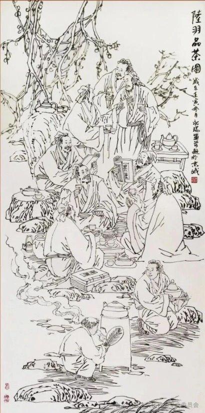 《陆羽品茶图》138cmx69cm