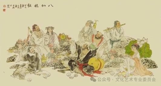 《八仙畅饮图》:365×147cm的巨幅作品,以独特的三角形构图和生动笔墨,将八仙性格刻画得淋漓尽致,是其人物画的代表作之一,多次被提及并被中南海等机构收藏。