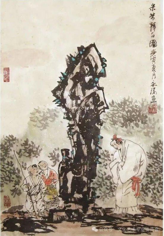 《米芾拜石图》67cmx45cm