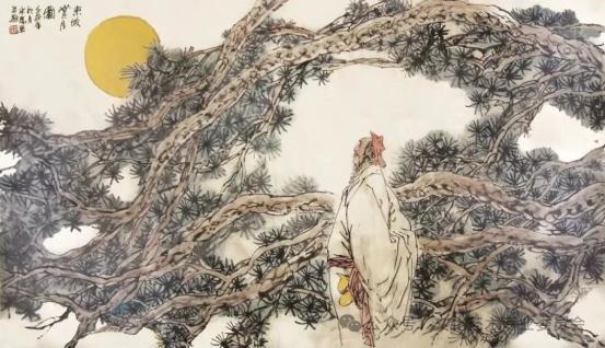《东坡赏月图》:186×96cm,以旷达洒脱的笔触展现苏东坡的文人风骨,画面意境深远,是其古代文人系列中的经典。