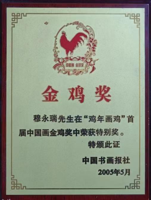 在《 鸡年画鸡》首届金鸡奖中荣获特别奖。(证书)