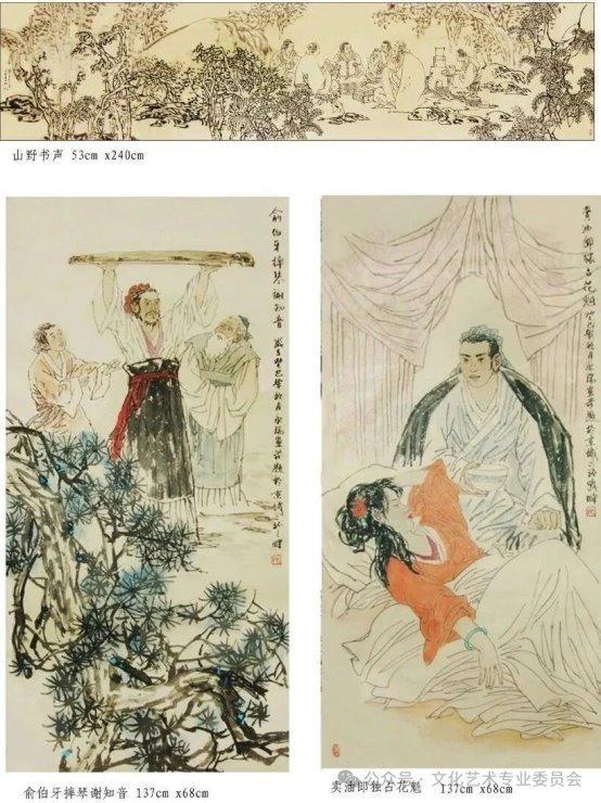 《俞伯牙摔琴谢知音》:137×67cm,通过极具张力的戏剧性构图,精准传达出知音难觅的悲怆情感,被多篇赏析文章重点评价。