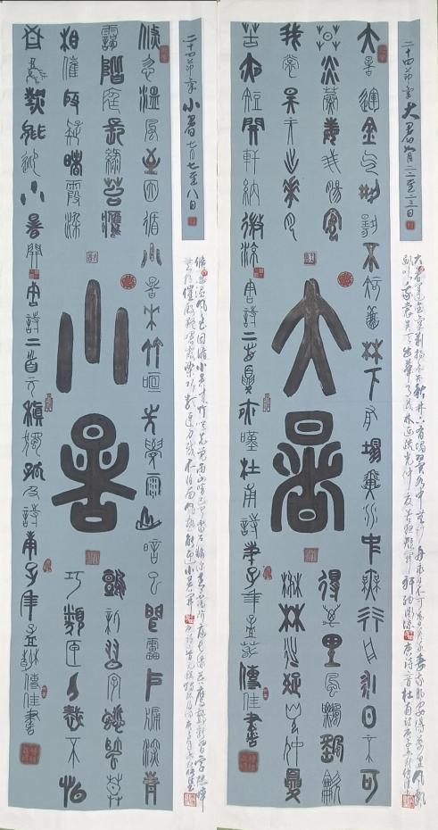 《二十四节气》立春,雨水,惊蛰,春分,清明,谷雨,立夏,小满,芒种,夏至,小暑,大暑,立秋,处暑,白露,秋分,寒露,霜降,立冬,小雪,大雪,冬至,小寒,大寒。