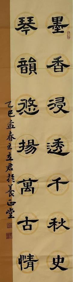 王立君的书法在国际文化交流中深受欢迎的同时,北京西城区、东城区、昌平区等许多各阶层人士的家中,都掛着他的书法《律己》《良知》《一生勤为本万事诚做基》等作品,企业职工李家军、姜延海们,每年回家都把他的春联贴在大门小门。