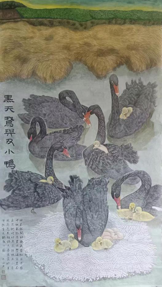 作品创作追求形式美,意境美,墨色美。坚守传统,传统是中华文化的根源。又力求创新。用最大的功力打进去,以最大的勇气打出来。将错就错。构图注重奇特多变,在刻苦进行笔墨锤炼的同时,突显高华灵动之气,做到诗,书,画,印四位一体。