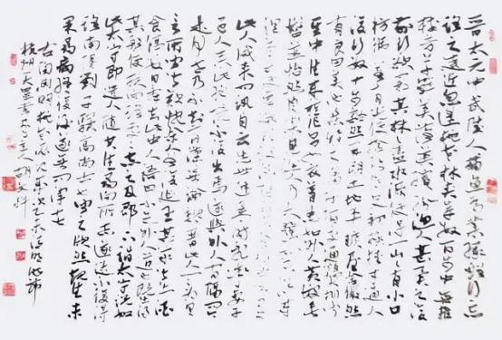 胡文科,1957 年 2 月生于杭州,祖籍安徽黟县 6 岁起随祖父学习书法,22 岁师承沙孟海先生,擅小楷、行书、狂草等多种书体,幼学二王后追随明清风貌,溶王铎、徐渭、傅山、张瑞图等诸家豪放体格爲一炉,姿态生动,章法雄阔、书法生涯六十余年。