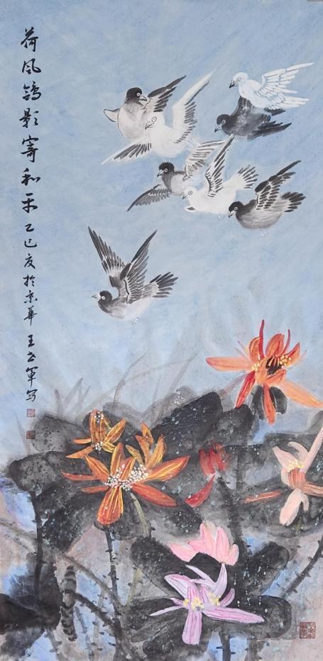 王世军先生的作品多次参加国际和国内书画展,并屡获殊荣。他的作品深受各界人士喜爱,被多家机构和国际政要、知名人士收藏,这进一步证明了他的艺术才华和作品的价值。更难能可贵的是,他多次将作品拍卖所得捐献给灾区和慈善机构,体现了他的社会责任感和爱心。此外,他在艺术教育和推广方面也做出了积极贡献。作为客座教授,他不仅在清华大学美术学院和中央美术学院传授艺术知识,还在全国公安文联书画创作基地等机构担任教职,致力于培养更多的艺术人才。