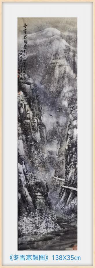 第三届 “大千杯” 展上,他的《寒梅映雪》与百位艺术家的作品同辉。评委叹:“笔端有温度,墨色见慈悲。” 这年深秋,《披图揽胜》手卷展在京开幕,他的《富春山居意韵》长卷,在追摹古意中注入东北山水的凛冽,观者如潮。