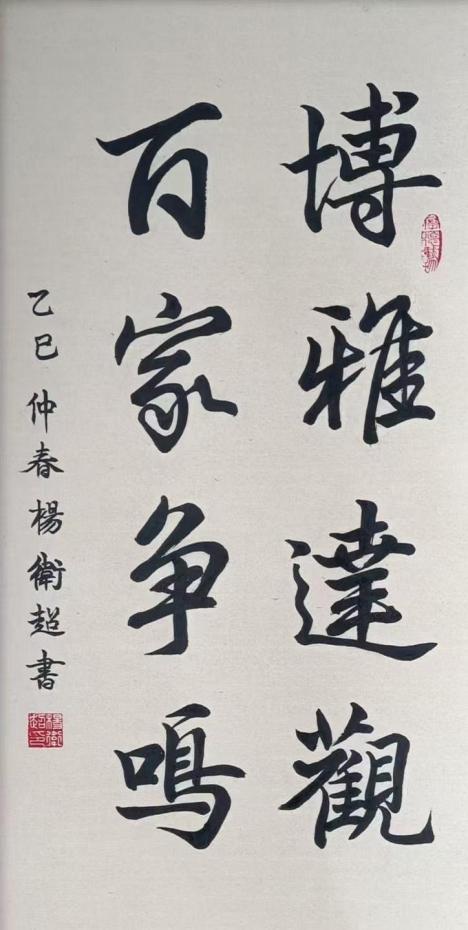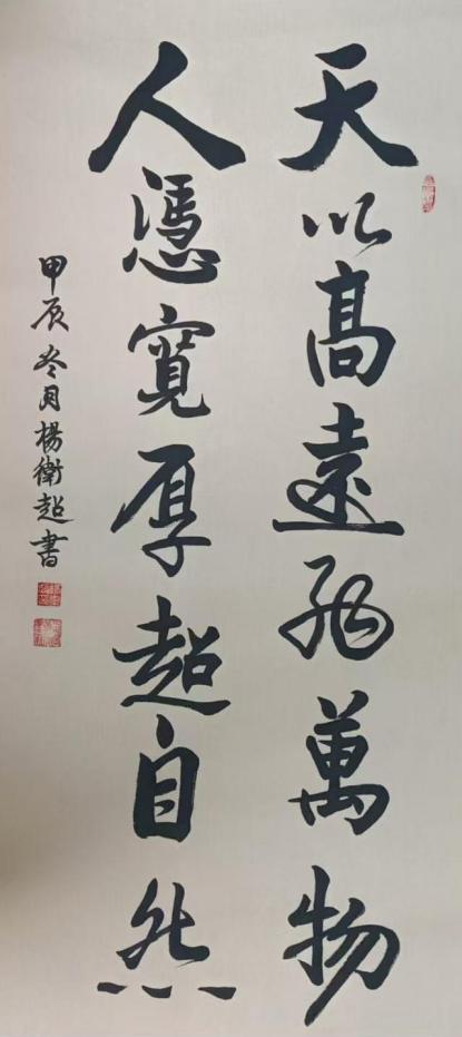 人说退休后最大的好处,是有大把时间任你挥霍。于是他重拾旧梦,拜师学艺。三年来,他坚持以古人为师,以能者为师,书画兼修,自娱自乐。他先后得到中国民族文化研究会诗书画艺术委员会终身名誉主席杨志谦大师的悉心指导以及在著名及象教育机构学习期间,对书画艺术理论和实践进行了系统地研修,书法得到陈墨、玉广院长的授课指导,国画得到欧阳青墨、曲寒山、若明等院长的授课指导以及师承齐白石第三代弟子传人李树宝大师,使他的书画功底有了长足的精进。书画作品多次在业内展出类获大奖。2024年 1 月 17 日参加北京第四届″翰墨传情-盛世收藏"书画精英展,其绘画作品《松鹤长春》荣获金奖,由中宣部原机关党组书记、文艺局局长、老干部局局长马拴柱先生亲自为其颁奖并合影留念。同一天参与国际文化交流,作品被多民族玻利维亚国驻华大使馆收藏,并授予杨卫超为"中玻文化交流使者″荣誉称号。2024年 7 月作品《梦里水乡》参加中国关工委″文体嘉年华"在国家体育鸟巢助力奥运健儿书画展中荣获金奖,参与百米长卷创世界记录。2024 年杨卫超还被中国文化艺术人才库授予"盛世收藏-中华书画精英"荣誉称号,被中国文化与教育诚信品牌联盟授予"诚信品牌书画家″称号。搜狐、百度 APP、都市头条、网易新闻等多家媒体进行了报道。2025 年 5 月美术作品《秀峰入云》和《听松观景》分别荣获 2025"锦绣江南"全国书画艺术作品大展,美术组特别金奖和金奖。